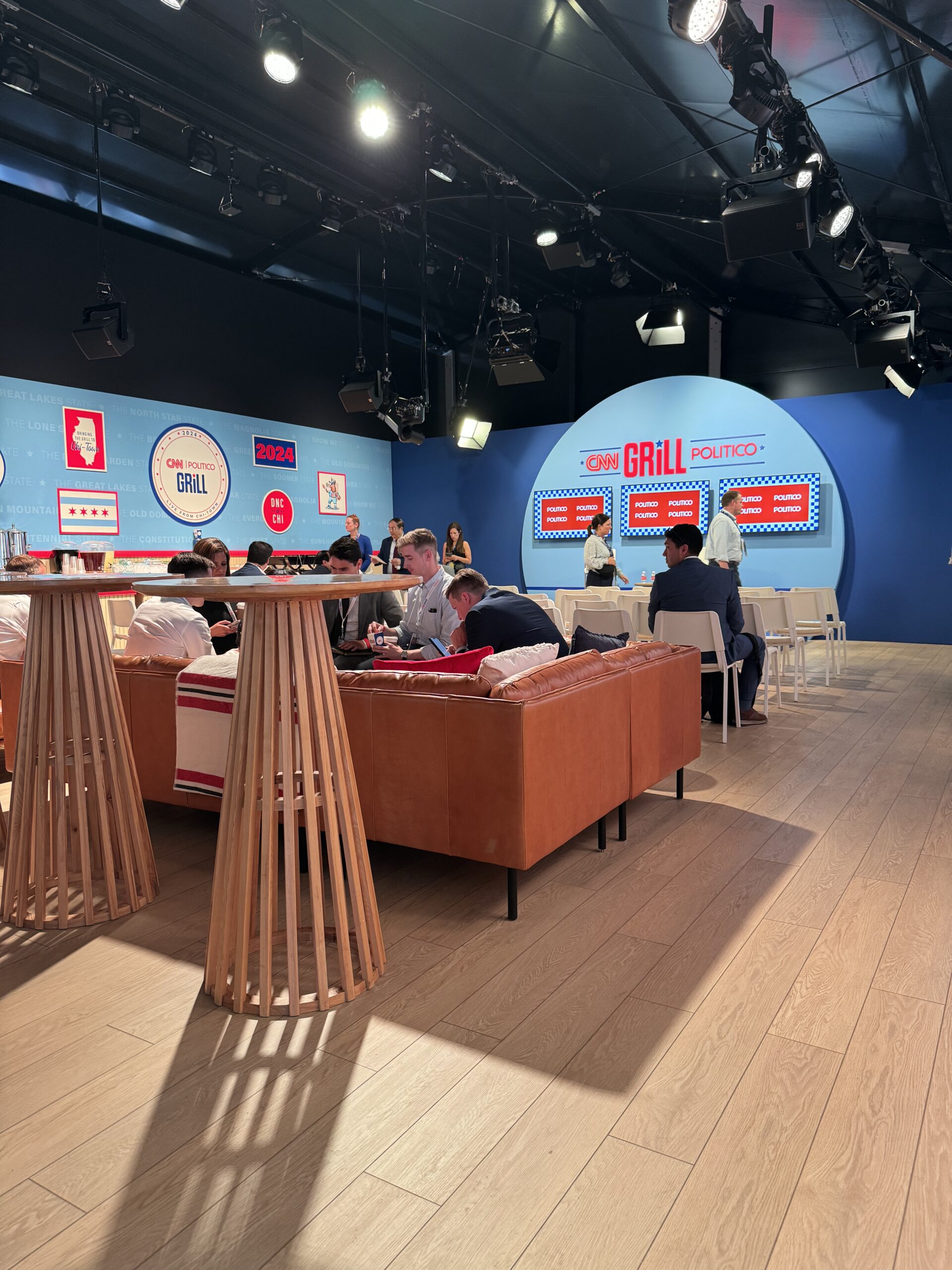 For the last four elections, Production Plus has had the opportunity to construct the CNN pop-up grill for the Democratic and Republican national conventions alongside election years. This most recent election year, 2024, we again had the opportunity to construct the CNN | Politico grill in Milwaukee, WI and Chicago, IL. At both grills, we transformed the interiors of blank structures to become functioning grills, broadcast hubs, and a place for political figures to connect. Outside of our typical services offered for this project, custom fabrication, AV enhancements, and custom print work, Production Plus also managed permitting, labor staffing, and logistical coordination.